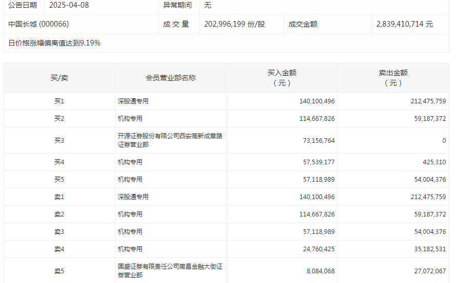 18 04-20 08:48中国长城今日涨停 三机构合计净买入1.16亿元