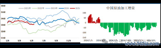 另外从4月油价跌破60美元之后,WTI原油2次下探到了55美元附近,这个价格已经会迫使美国页岩油商缩减开支,降低原油产量,这一点通过美国的钻机与产量与油价关系上有所反馈。美国炼厂开工率和炼油加工量都在季节性环比持续增长,但炼油产出更多是通过增加产品出口来化解,数据显示美国成品油出口上周大幅跳涨,刷新历史同期成品油出口记录。而美国国内原油表需有小幅下行,成品油表需环比小幅回落,弱于去年同期水平。中国原油加工量环比上周基本持平,主营炼厂结束检修开工回升,而地炼开始陆续进入检修,国内原油加工量低于去年同期,能源转型带来的成品油消费替代继续进行。